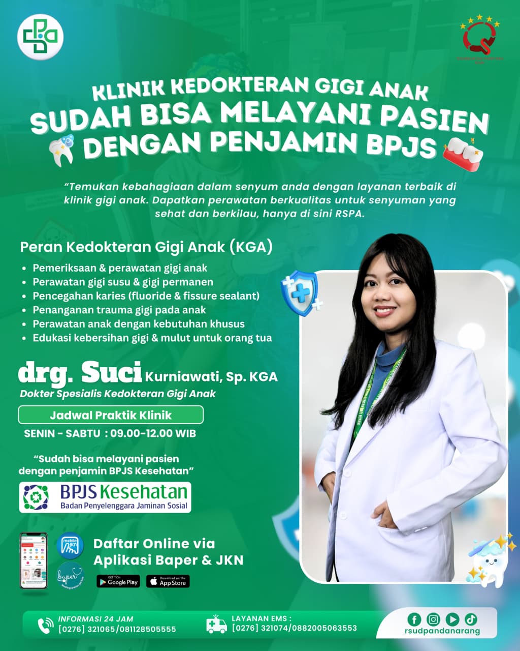 Kegawatandaruratan : Tetap dilayani melalui IGD (24 JAM)